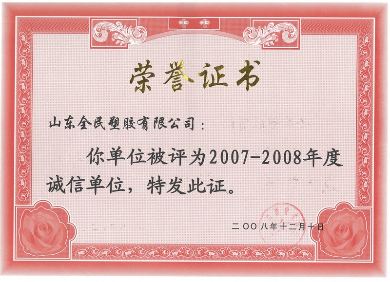 市級誠信企業榮譽市級2008.12